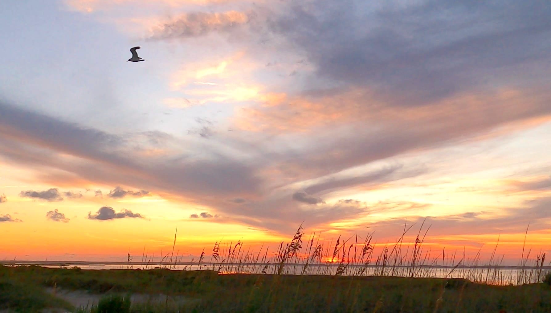 The location, though. The location is the thing. The island here is so narrow that the horizon gives you ocean on one side and sound on the other. You don't have to choose between the sunrise and the sunset. You just turn around.