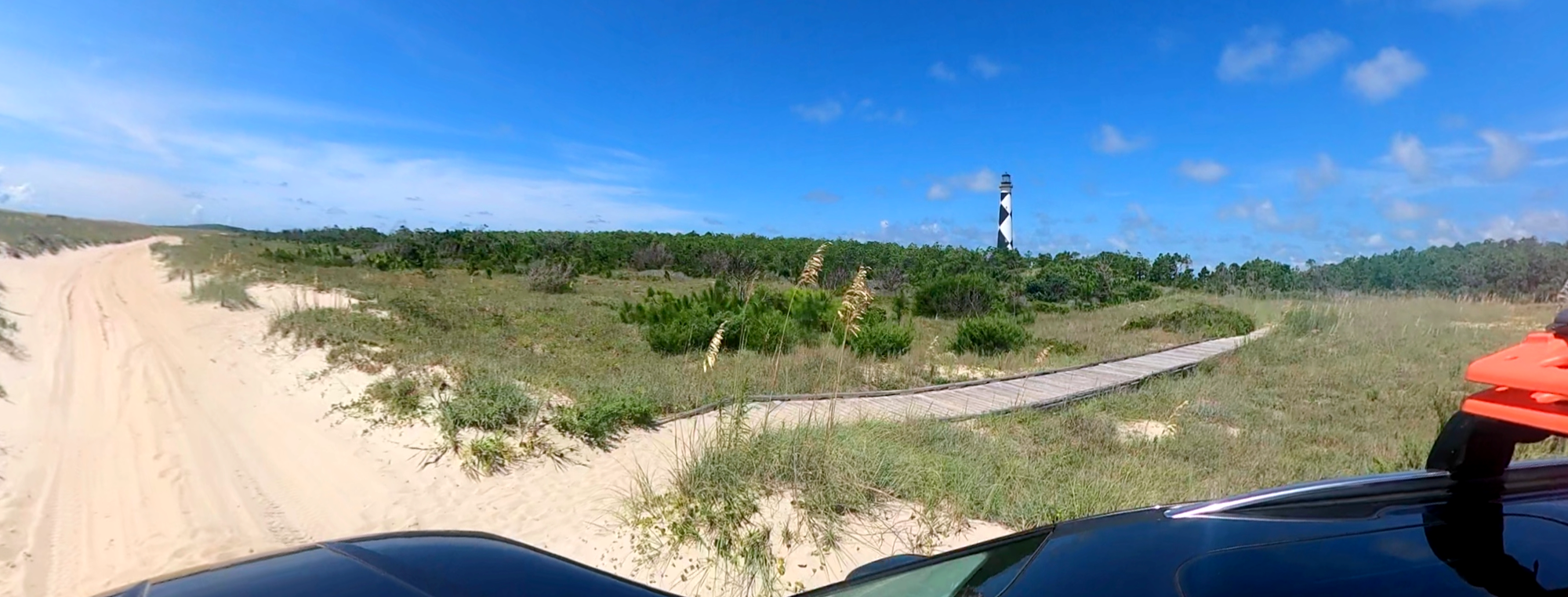 As a precaution — a reasonable one, we told ourselves — we put every piece of food we could into the cooler and tied shut every bag that didn't fit. We left for the day: drove south to the lighthouse, walked to the Point, came back sunburned and happy and tired in the way that island days leave you.