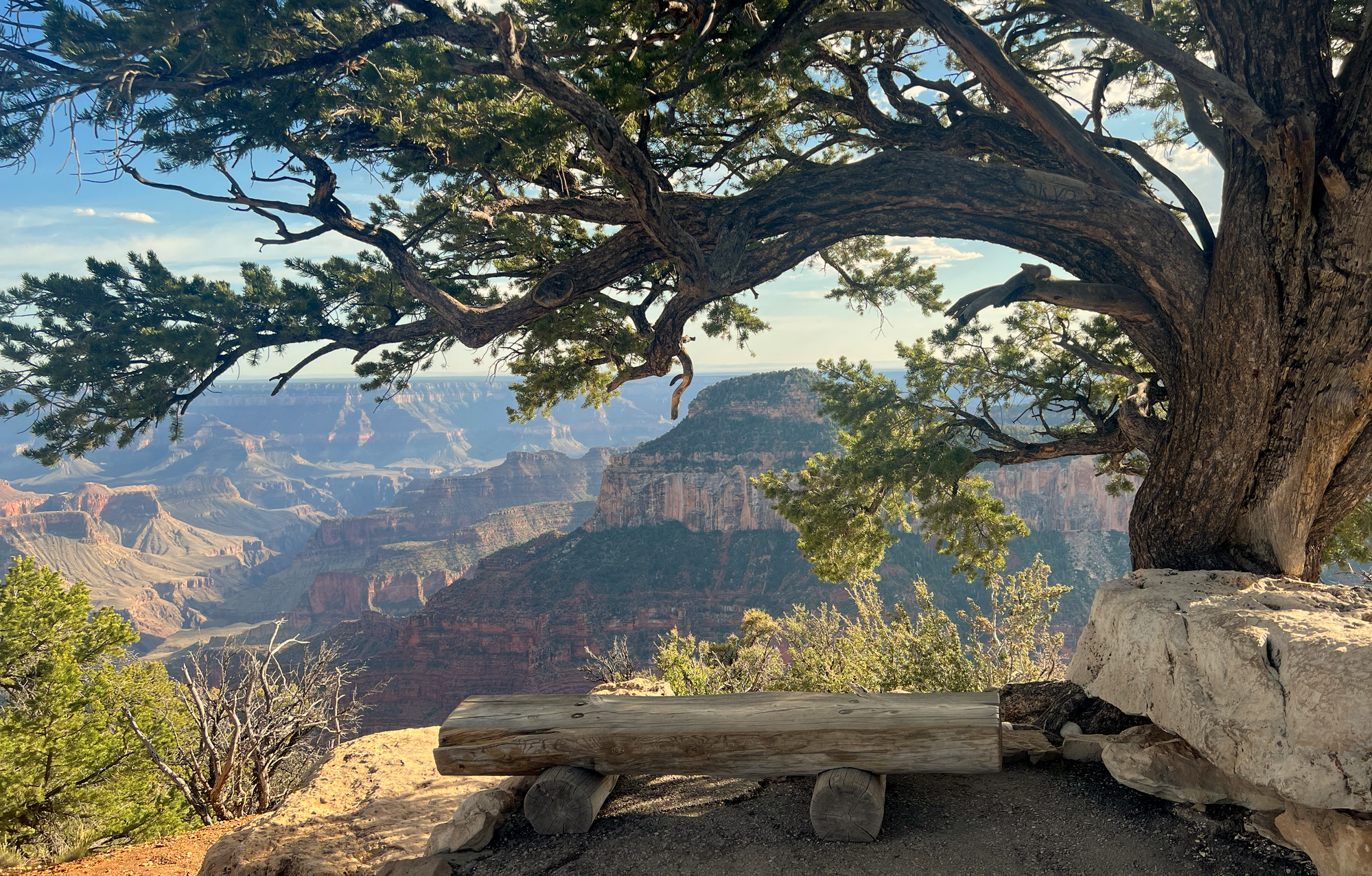 The North Rim is the quieter, less-visited side of the Grand Canyon. It sits about 1,000 feet higher than the South Rim, which means cooler temperatures, thicker forests, and a completely different feel. Where the South Rim buzzes with day-trippers and tour buses, the North Rim moves at a slower pace. It felt like we had the place more to ourselves.