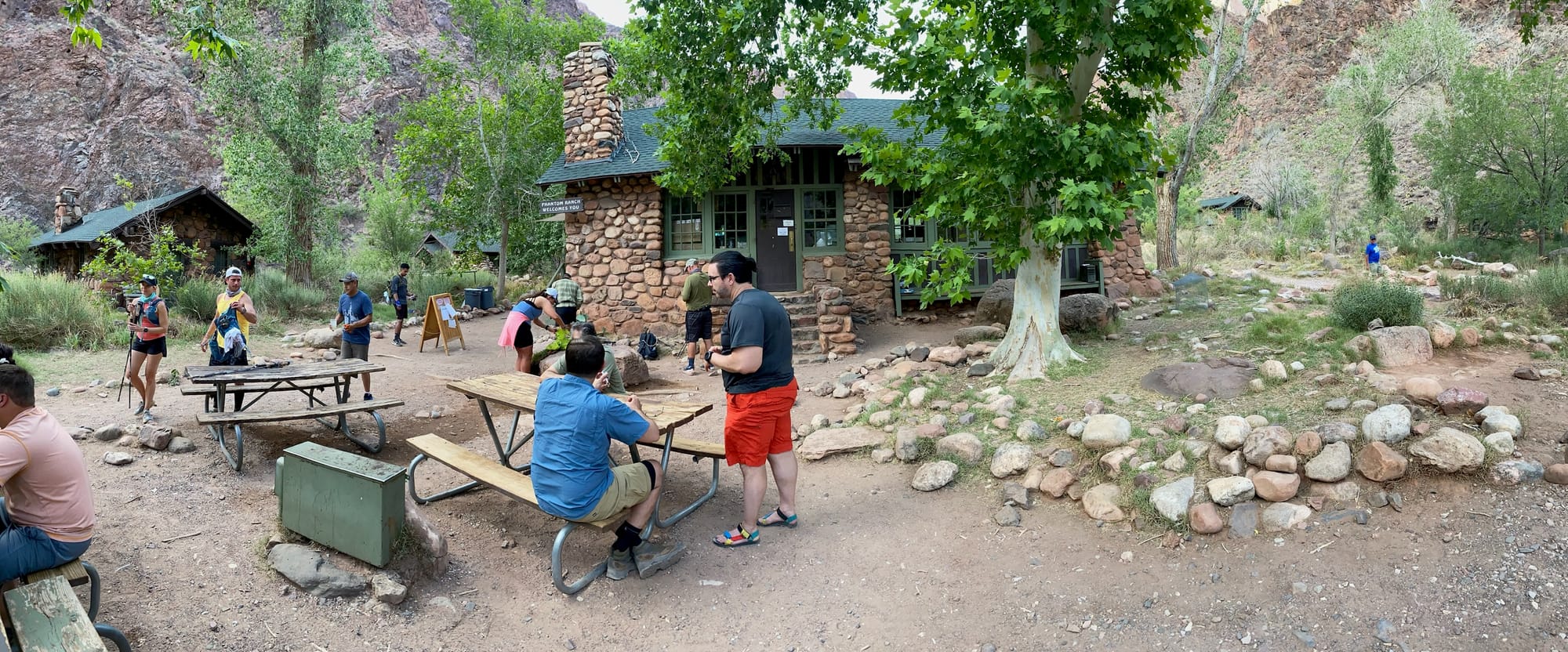The conversation with other hikers was as good as the food. There's a natural camaraderie that happens at the bottom of the Grand Canyon — everyone there has worked to get there, and the shared experience creates easy, genuine connections.