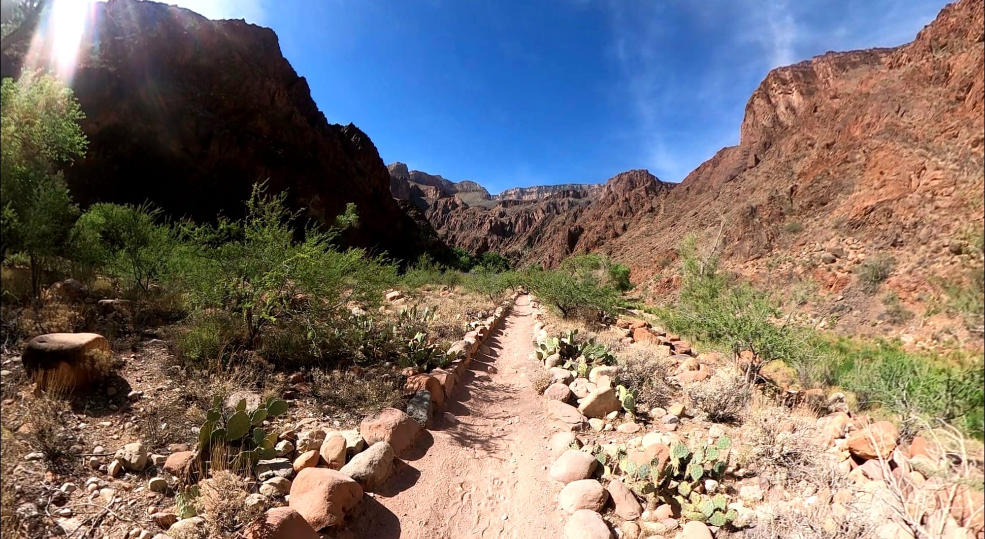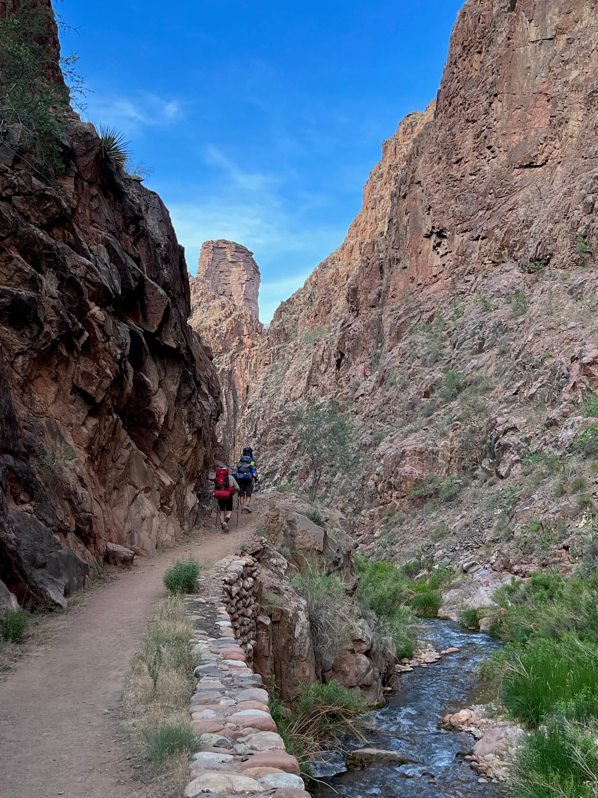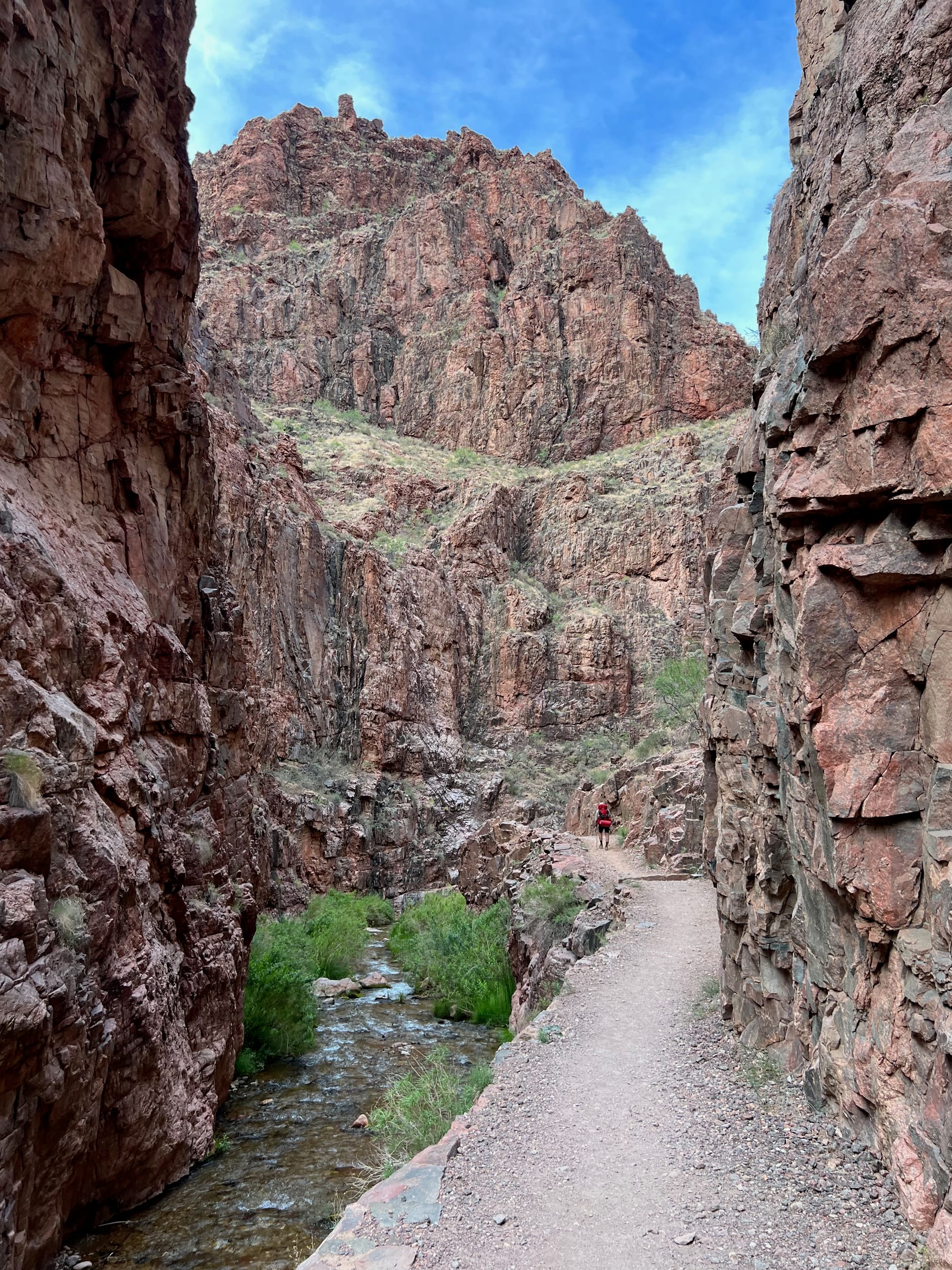 In the early morning hours, The Box was cool and quiet. The towering walls that would later trap heat were still in shadow, and Bright Angel Creek — which follows the trail through this entire section — provided a constant soundtrack of running water.