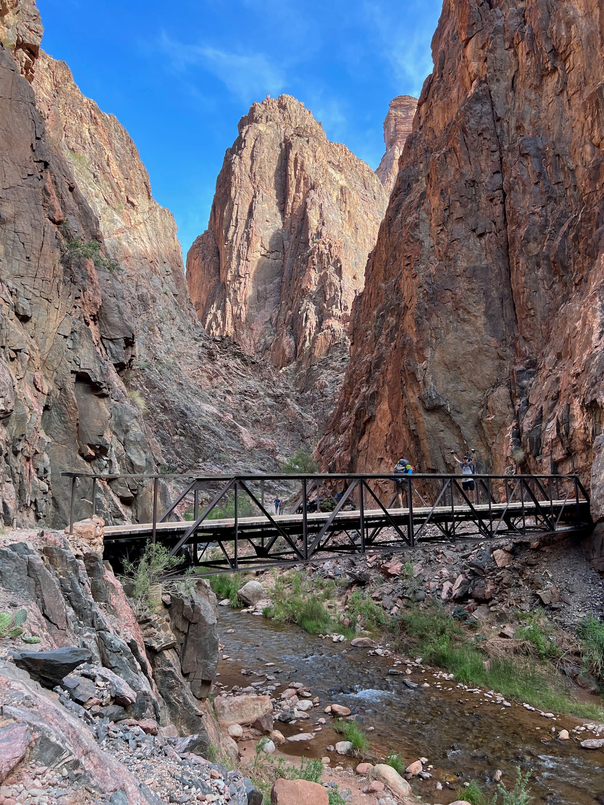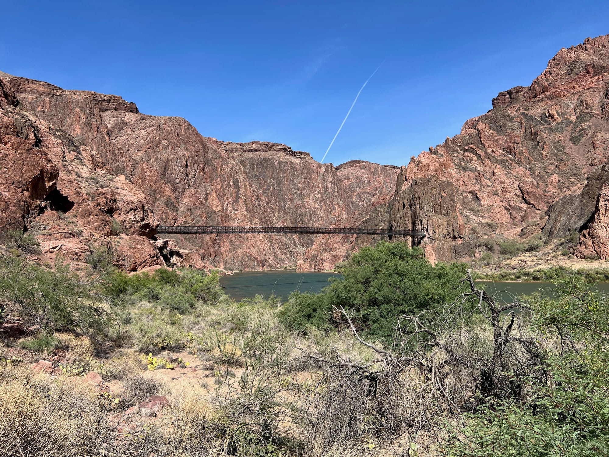 Standing on the bridge, looking down at the Colorado River carving through the rock a couple thousand feet below the rim, the scale of the canyon really sinks in. You're at the very bottom of something that took millions of years to create, and the river that did it is still going, right there under your feet.