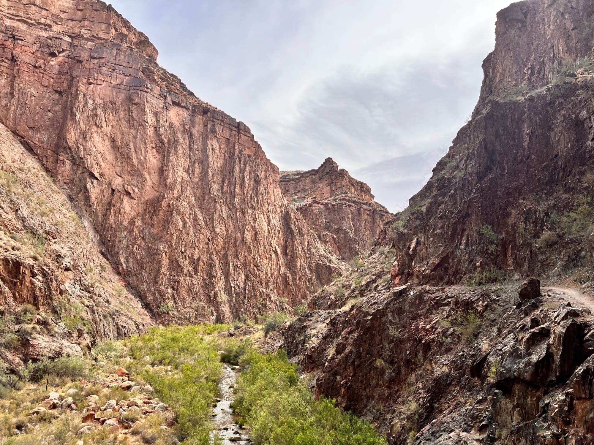 In the early morning hours, The Box was cool and quiet. The towering walls that would later trap heat were still in shadow, and Bright Angel Creek — which follows the trail through this entire section — provided a constant soundtrack of running water.